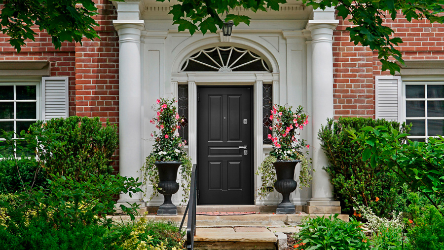 Входная дверь — это «лицо» дома. Металлические двери сегодня бывают с МДФ-панелями, коваными элементами, стеклянными вставками, ламинированной отделкой — всё зависит от вашего стиля.