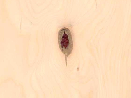 Еще один вид природного дефекта — прорость. Светлая прорость представляет собой заросшую в стволе кору и появляется после сильных повреждений самого дерева. Темная прорость — особенно серьезный дефект, появление которого является недопустимым в фанере высокого сорта. Самым большим браком является образование гнили — наличие дефекта такого типа делает фанеру любого сорта некондиционной.