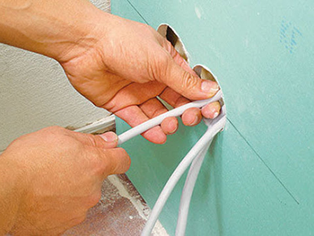 Важно! По правилам установки электрооборудования (ПУЭ) силовые провода за обшивкой должны быть в гофротрубе не поддерживающей горение – металлорукав, или пластиковую гофру с маркировкой НГ (не горючий).
