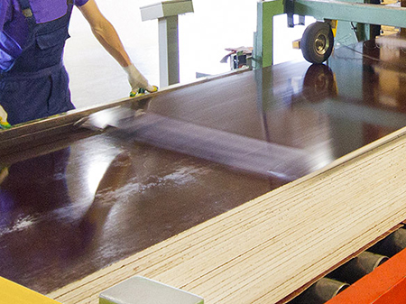В качестве сырья для ламинированных плит используется прошедшая шлифовку водостойкая фанера из березы класса эмиссии E1. И пленка на основе реактопласта, получаемая путем пропитывания бумаги термоактивной смолой, отвердевающей при нагревании.