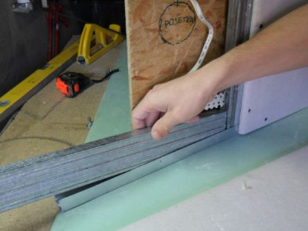 Для крепления плинтусов к гипсокартону хорошим решением будет вложить в нижний UD обрезки CD между стойками. И тогда после всех отделочных работ будет достаточно прикрутить плинтус шурупами по металлу через гипсокартон в этот профиль. Не попасть невозможно!