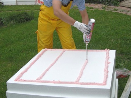 Для монтажа пенополистироловых плит существует клей-пена. Это материал новый. В нем совмещены свойства двух составов для крепежных работ: клея и герметизирующей пены. Соединяет пористые теплоизоляционные плиты с какой-либо поверхностью и между собой.