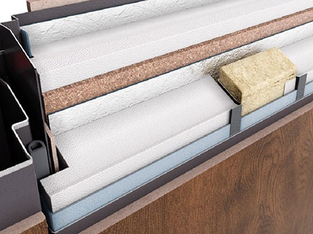 Внутреннее наполнение двери работает на поглощение шумов, но эффективность этой работы зависит не с только от толщины двери, сколько от числа слоев различных материалов, способных гасить звуки за счет своей пористой структуры. Каждый слой будет отсекать и поглощать шум с определенной вилкой длины звуковых волн, а по совокупности их работа сложится в широкий диапазон звуковых колебаний, которые в квартиру или дом уже не попадут и наружу не выйдут.