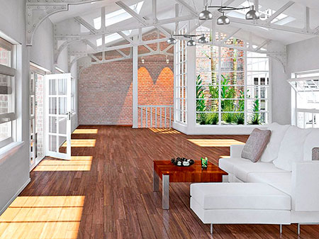 Показать преимущества современных технологий отделки пола можно на примере экспериментального объекта — частного жилого здания 1960 года постройки, модернизированного по последнему слову техники и превращенного в настоящий дом будущего. Главным достоинством его обновленной отопительной системы стало сочетание самонивелирующейся стяжки Knauf и тонкослойной энергоэффективной системы напольного отопления Uponor монтажной высотой всего 2 см. Прежняя стяжка при этом не удаляется: ее шлифуют, очищают от пыли и обрабатывают водной грунтовкой на базе дисперсионной искусственной смолы. Данная пропитка не содержит растворителей и пластификаторов и служит для регулирования впитывающей способности и улучшения адгезии основания. Она поставляется готовой к применению и в неразбавленном виде наносится на всю поверхность пола вручную перекрестными движениями с помощью кисти, щетки или валика. При нормальных условиях (температура 20°C и относительная влажность 65%) в хорошо проветриваемом помещении состав высыхает примерно за 2 ч. После этого в соответствии с указаниями производителя укладывают элементы пластиковой подложки Minitec с клеевым слоем на обратной стороне. Гибкий трубопровод распределяют по поверхности пола и защелкивают в пазах подложки так, чтобы интервалы между линиями теплоносителя получились одинаковыми. Потом, вставив по периметру изолирующие прокладки, заливают самовыравнивающуюся стяжку (ее поверхность должна быть выше выступающих элементов теплого пола минимум на 8 мм). Для лучшего проникновения в углубления самовыравнивающуюся стяжку тщательно распределяют специальным инструментом. Уже спустя 2 дня разрешается тестировать систему теплого пола. Благодаря незначительной толщине слой стяжки полностью высыхает через 5 дней, после чего можно начинать укладку финишного напольного покрытия.