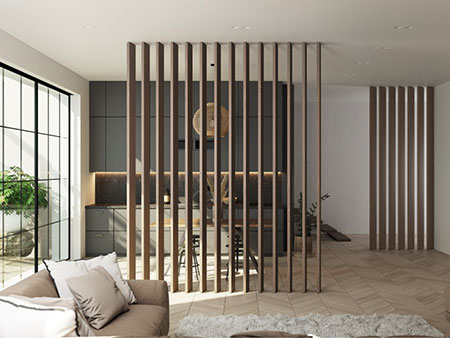 Раздвижные перегородки: Это перегородки, которые могут двигаться вдоль шин или рельсов. Они могут быть выполнены из различных материалов, таких как стекло, дерево или металл. Раздвижные перегородки позволяют гибко регулировать размеры комнаты, создавать различные конфигурации и легко объединять или разделять пространства.