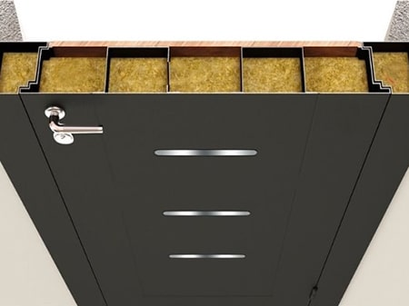 Минеральная вата — один из самых популярных наполнителей для входных дверей. Она обеспечивает высокую степень тепло- и звукоизоляции.
